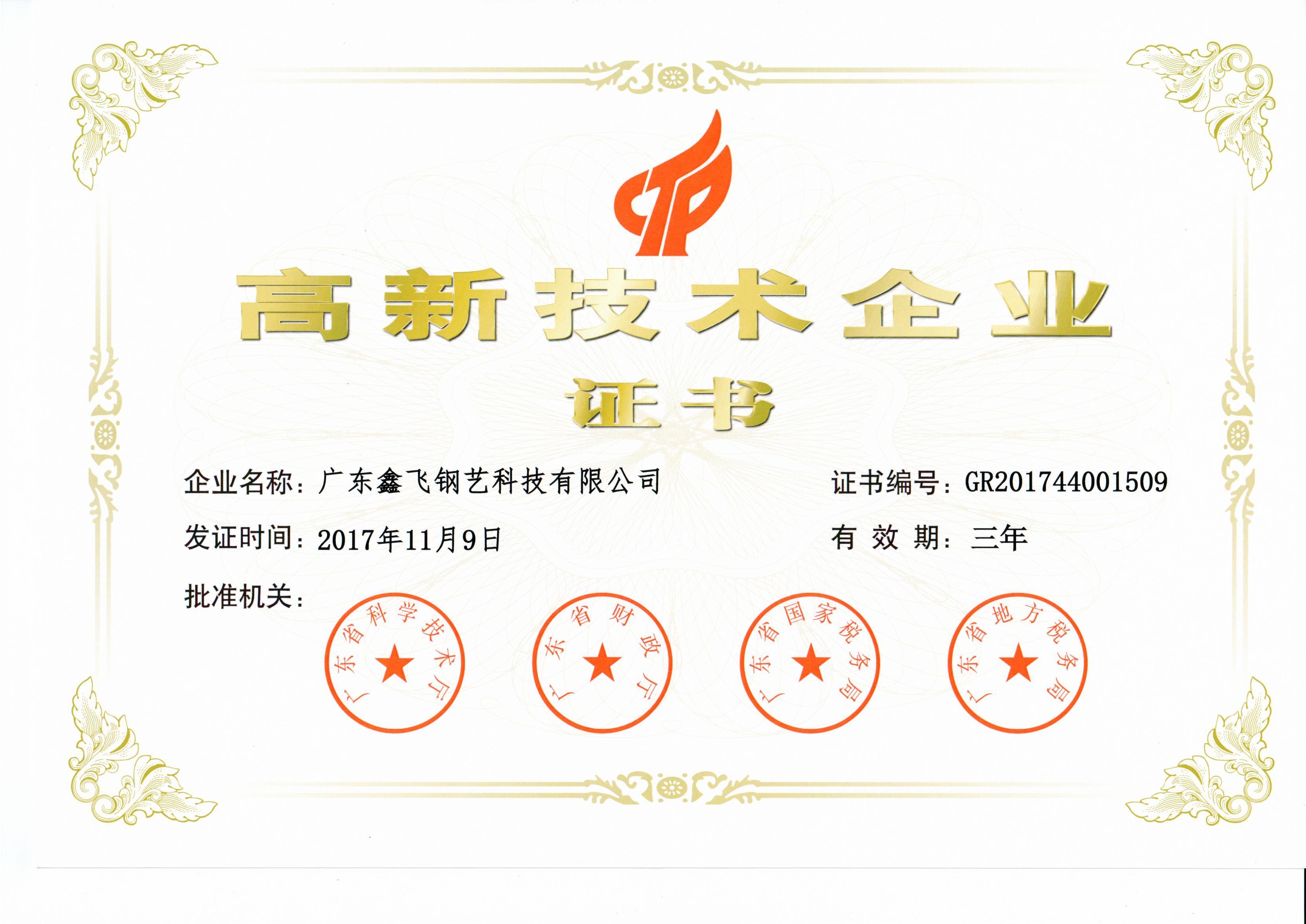 广东鑫飞钢艺科技有限公司成立于2013年,属于兴宁市政府招商引资企业。是梅州、兴宁两级政府为打造新型城镇化建设,举力从 “中国建材之都”(佛山)引进知名钢艺企业,是典型的集人才、技术、设备与人文地理相结合的现代新型企业。公司座落于兴宁市东莞石碣(兴宁)产业转移园(南区),前后建设占地面积达40000多平方米的现代化生产基地。